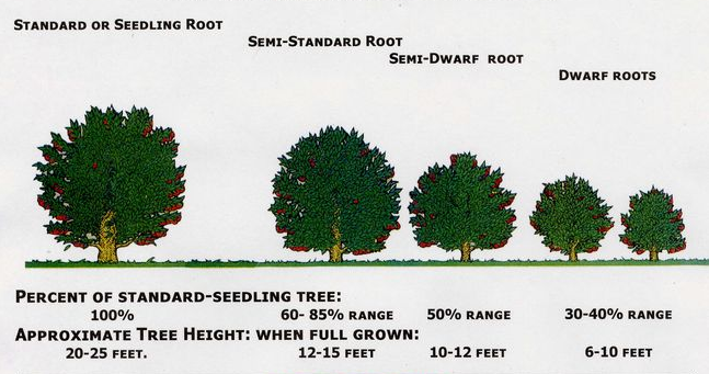 Choosing A Rootstock:The vigor of the rootstock will determine the ultimate size of the tree. A variety of rootstocks exist that produce dwarf, semi-dwarf, semi-standard, or standard(full size) fruit trees. Examine the chart above to determine the most desirable rootstock for your project.